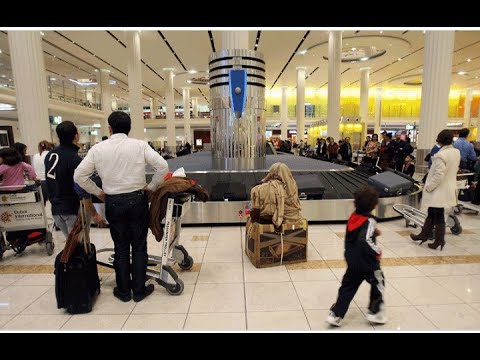 The luggage conveyor and luggage waiting area of the arrival hall of terminal 3 of Dubai International Airport
