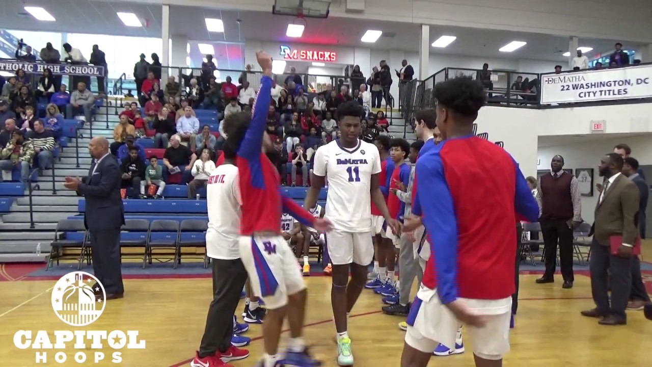 Three players from DeMatha notched new career highs in the senior night game. Paul Smith scored a game-high 17 points, Ant Perry scored 11, and DeMatha's beloved manager Jerome Lee suited up today and scored 3 points. For Good Counsel, Daysjuan Waters scored.a team-high 14 points, and Dylan Williamson scored 11.